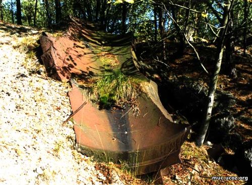 Хорошо быть бочкообразной опорой или стальной пластиной-мишенью для испытания бронебойных боеприпасов. Часть лежит к северу от ямы стрельбы 80 см.