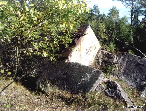 Часть стены, которая поддерживала рельс для маскировочного каркаса. Большие болты и стальные точки крепления видны.